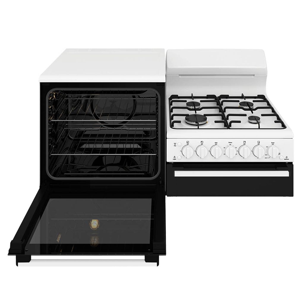 This Westinghouse unit offers a spacious oven with a four-burner gas cooktop. The functional conventional oven makes roasting and baking quick and effective, while the handy separate grill provides added cooking flexibility. The cooktop’s durable enamel finish not only looks stylish but is effortless to keep clean, no matter what’s on tonight’s menu. For complete peace of mind, the cooktop is fitted with a flame failure safety device.