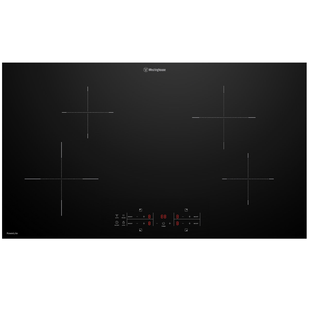 The Westinghouse WHI942BE PowerLite offers fast heating with PowerBoost and easy control with a Pause function. Its Hob2Hood feature automatically adjusts your rangehood for efficient ventilation. The QuickCook Timer helps perfect your meals, while the smooth ceramic surface is easy to clean. Safety features include touch controls and a child lock, making it a reliable choice for modern kitchens.