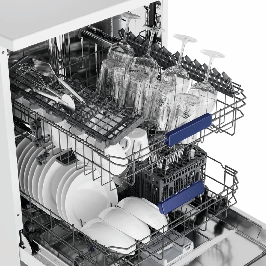 60cm freestanding dishwasher, white, with 14 place settings, 5 wash programs including Fast 30' and SensorWash, FastDry system, half load option, adjustable upper basket and 47dB operation.